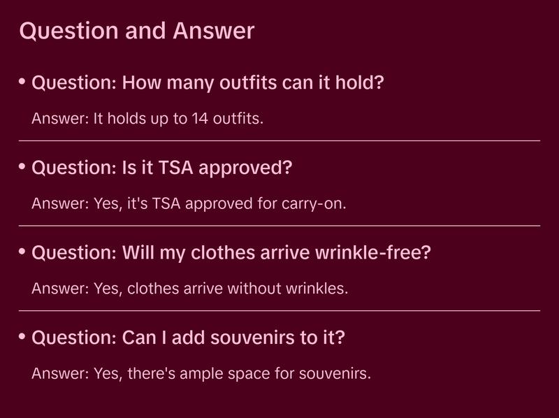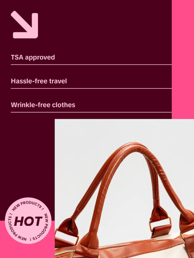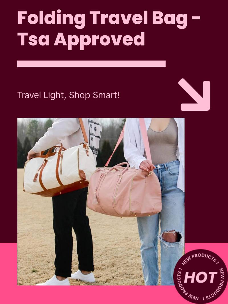 Tired of carrying bulky luggage that leads to unwanted expensive baggage fees while traveling? Our Folding Travel Bag is the solution you've been waiting for. With ample space for up to 14 outfits, shoes, and the built-in pockets for traveling essentials will still qualify as a TSA approved carry-on avoiding long waits at baggage claim. Whether you are traveling for the weekend or on vacation, roll into the airport without bulky luggage, expensive baggage fees, and the hassle of checking in bags with our Folding Travel Bag. Your clothes will arrive to your destination without wrinkles, and enough space to add souvenirs that you come across along the way.